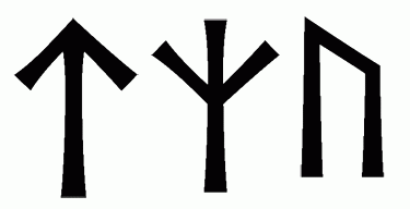 Значение руны Тиваз в первой позиции - полигон. Руна указывает на активность и соперничество, которыми насыщены обстоятельства на время прогноза. Наличие у Вас жизненной силы и воли является сейчас хорошим знаком для начинания чего угодно. Являясь Великой руной победы, олицетворяет силу характера и Ваши собственные возможности, благодаря которым сейчас возможно увеличение власти. Если третья руна Урус или Пертро, указывает на вспышку страсти, новые романтические возможности. В прогнозе иногда обозначает мужчину или человека, с которым Вы всегда мечтали быть.